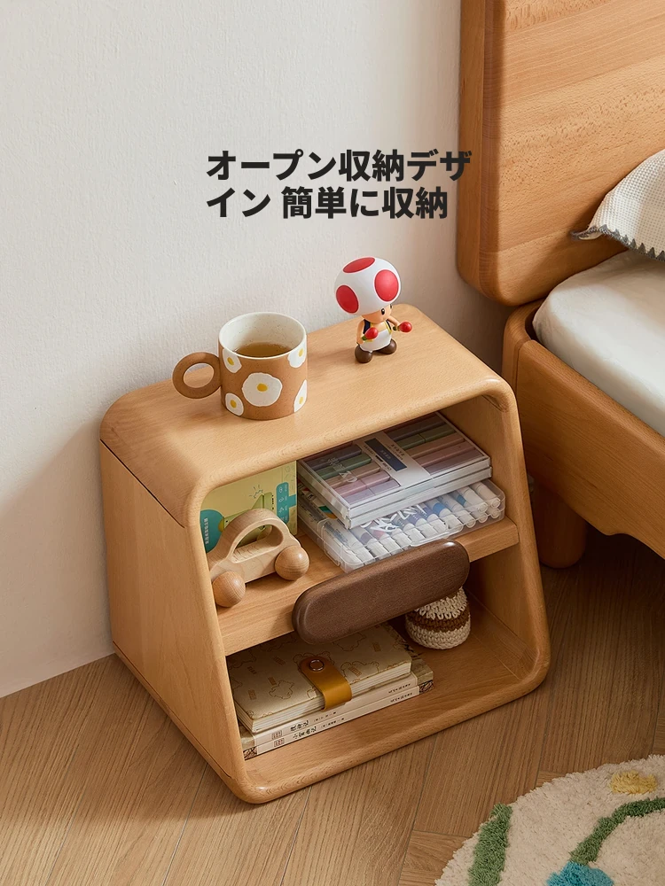 リンシー家具の小型キッズベッドサイドキャビネット - 天然木製の脚で安心・安全!子供部屋にぴったりな可愛らしいデザインで、収納力も抜群!