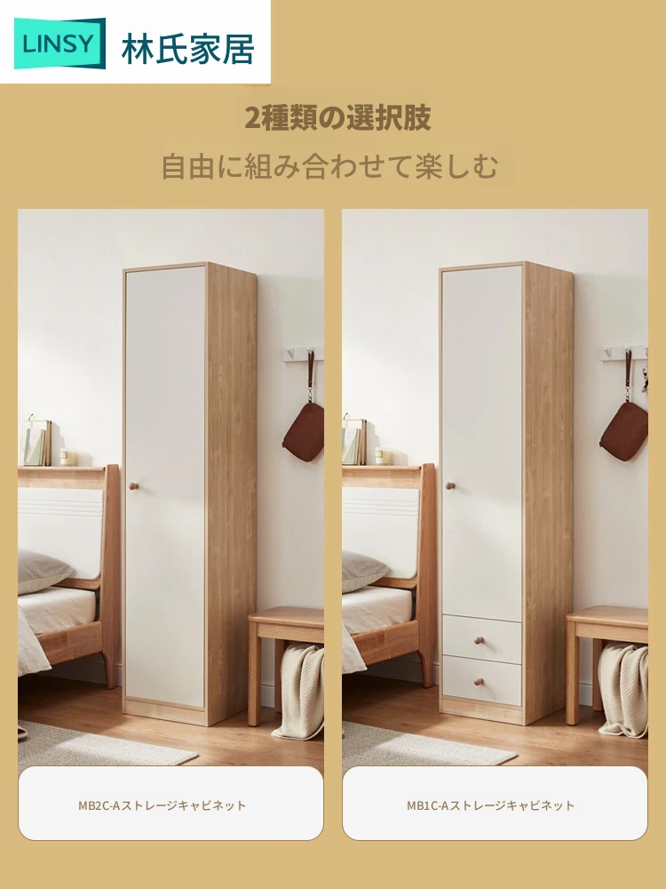 リンシー家具 大人向け プッシュ式引き戸クローゼット 寝室用 家庭用 スライドドア 天然木製 スリムな小型クローゼット 理想の家シリーズで、スタイリッシュな収納を実現!