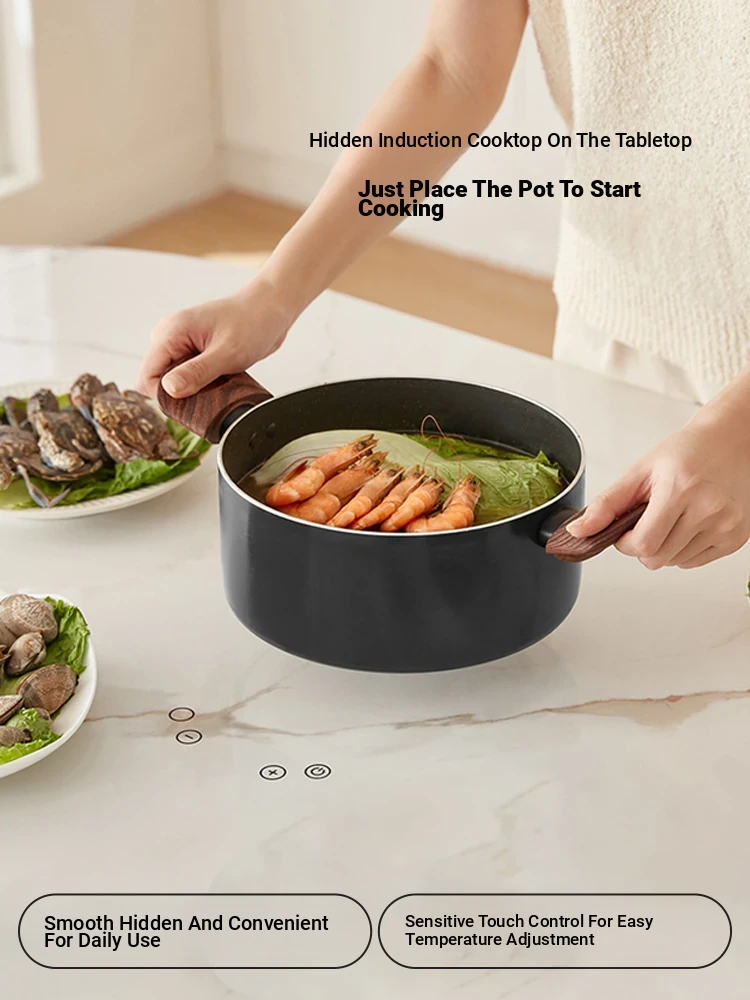 Lin's Home Creamy Rock Slab Island Dining Table with Integrated Induction Cooker - 2025 New Model from Lin's Woodwork for a Stylish and Functional Kitchen Experience!