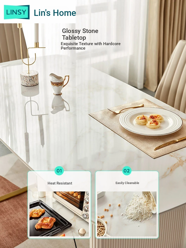 Linsy Luxury Marble Dining Table - 2025 New Arrival, Rectangular Minimalist Design with Microcrystal Stone Finish, Perfect for Elegant Dining Experiences - Model LS429