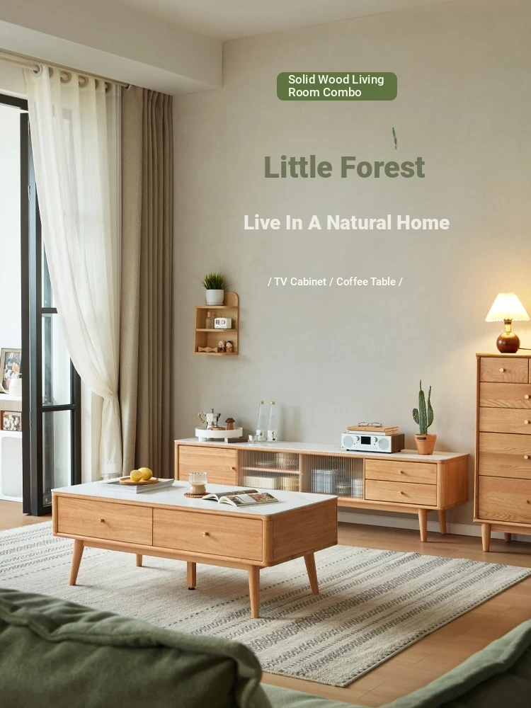 Lin’s Home Nordic Solid Wood TV Stand and Coffee Table Set - Stylish, Functional, and Perfect for Modern Living Spaces