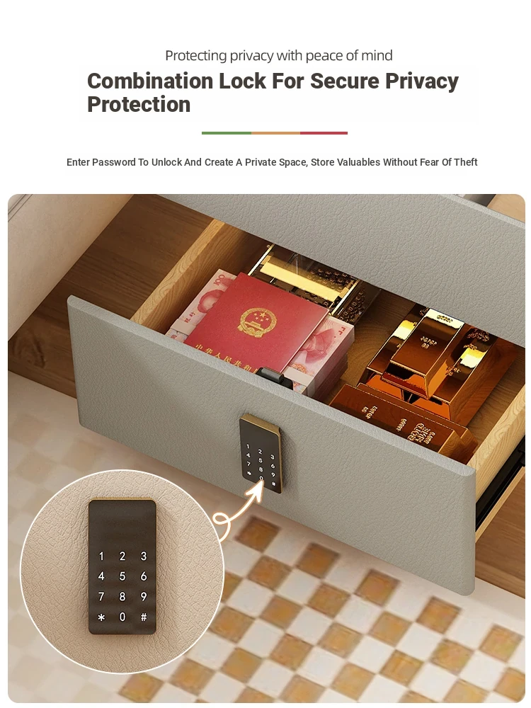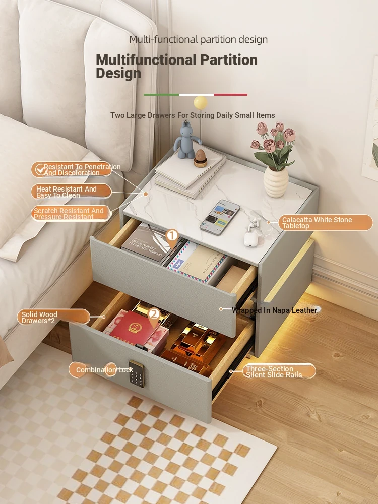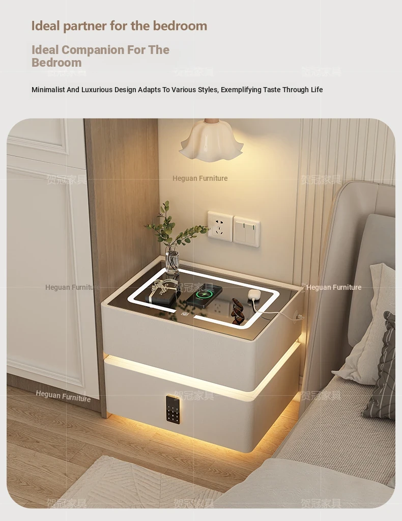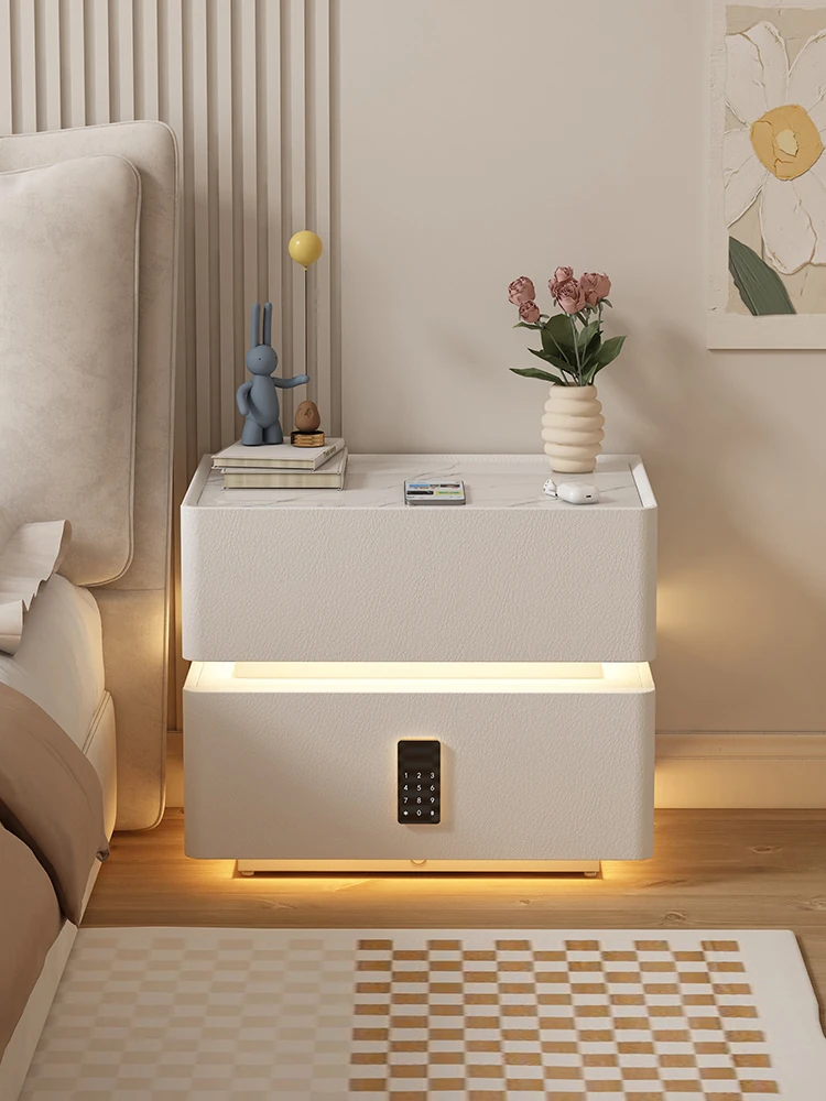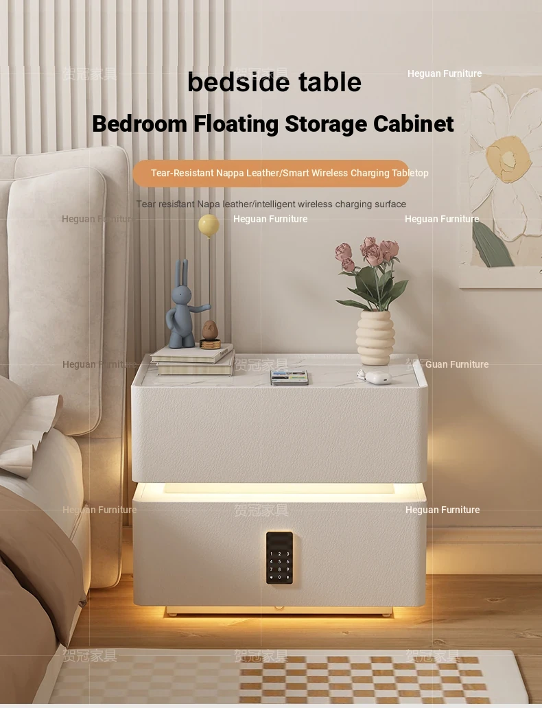Sleek Wall-Mounted Nightstand for Bedroom - Cream White Floating Corner Cabinet with Durable Stone Top and Secure Lock for Master Suite