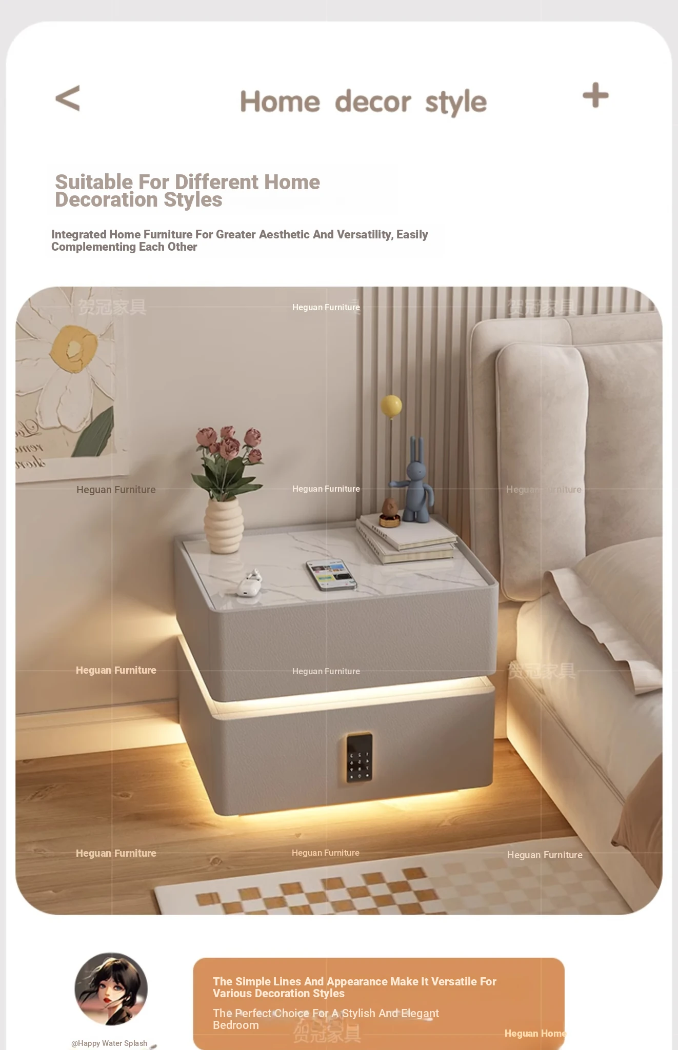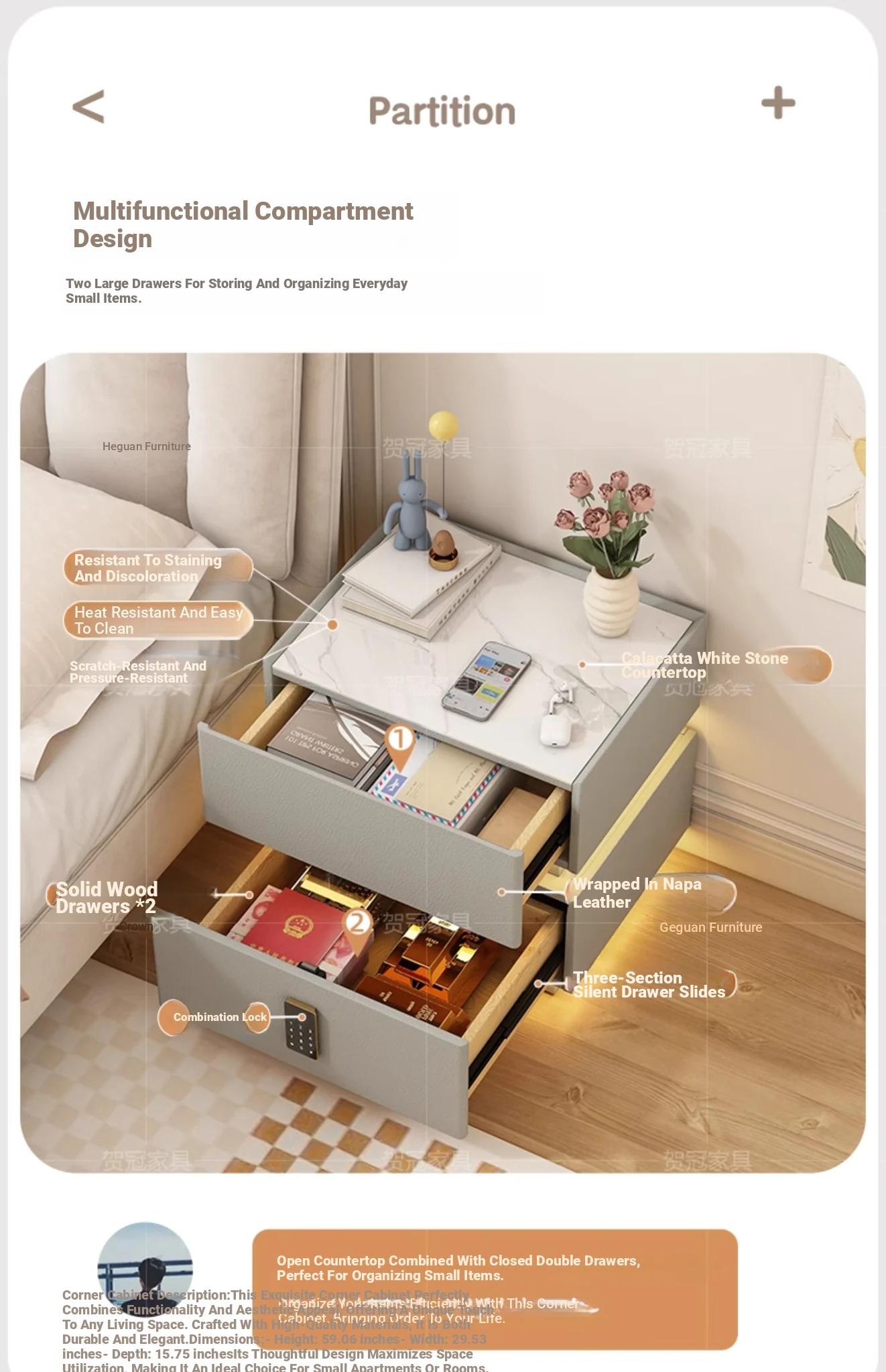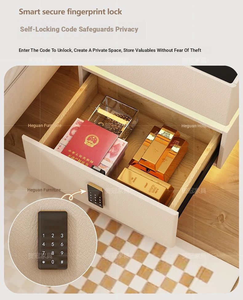 Sleek Wall-Mounted Nightstand for Bedroom - Cream White Floating Corner Cabinet with Durable Stone Top and Secure Lock for Master Suite