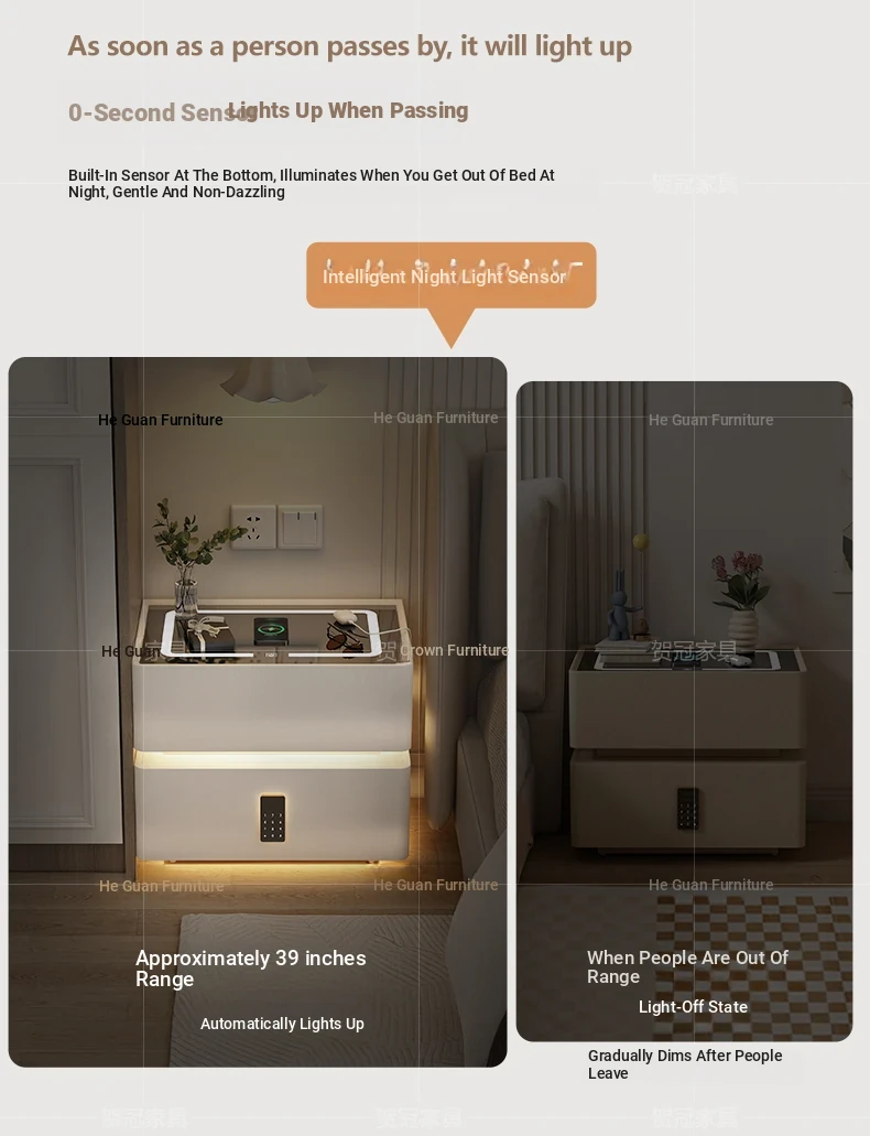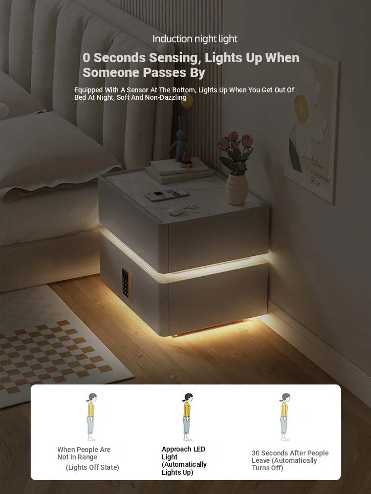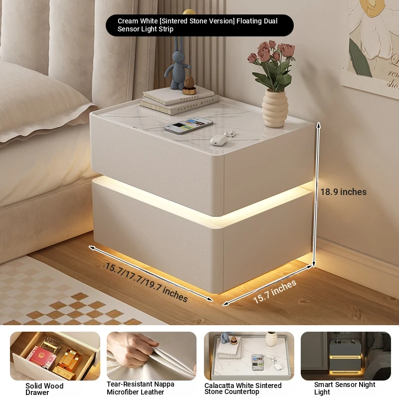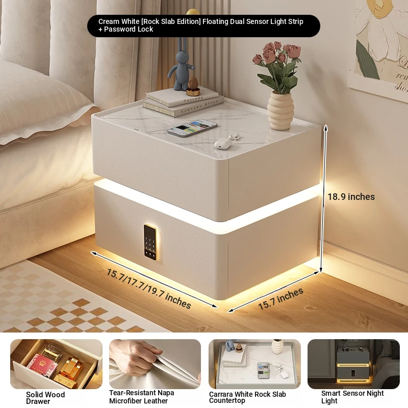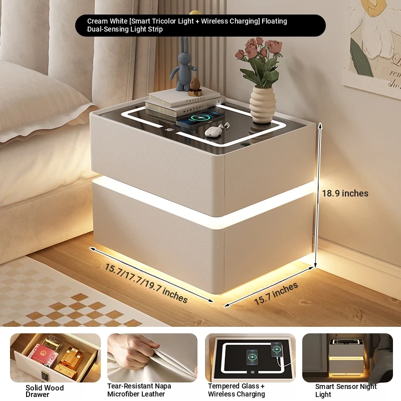 Cream White 17.72in [Intelligent Tri-color Lamp + Wireless Charge + USB + Audio + Password Lock] Suspension Double Sensor Lamp Strip