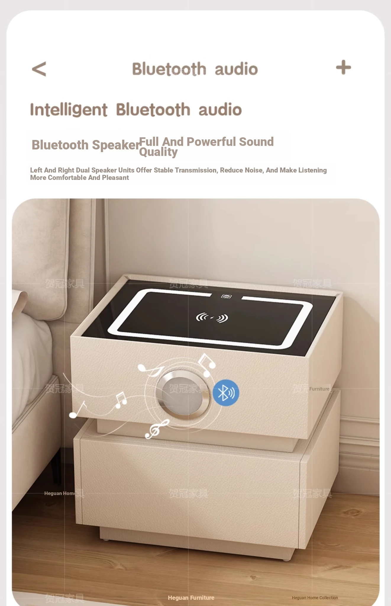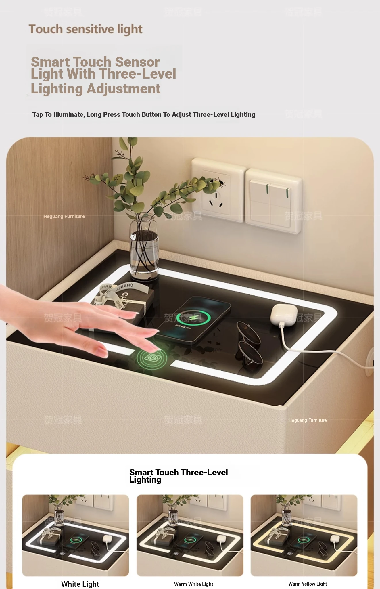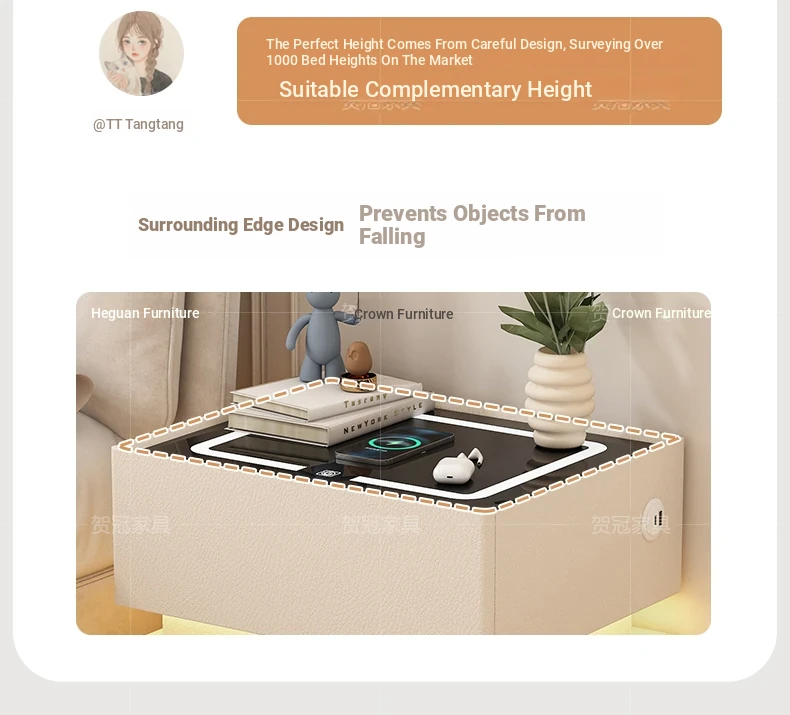 Cream White 17.72in [Intelligent Tri-color Lamp + Wireless Charge + USB + Audio + Password Lock] Suspension Double Sensor Lamp Strip