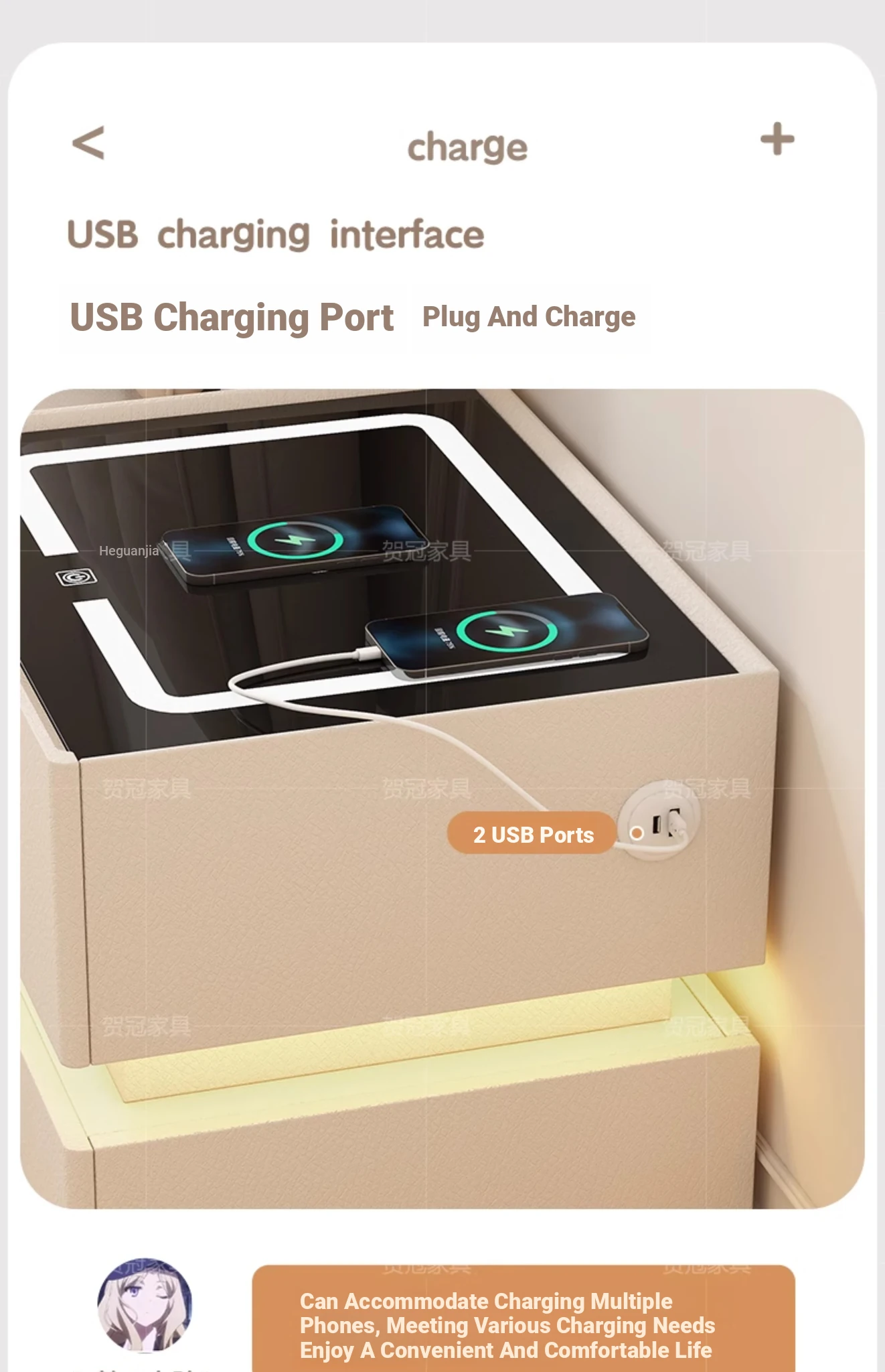 Cream White 19.69in [intelligent three-color lamp + wireless charge + USB + Audio + combination lock] suspension double Sensor lamp belt