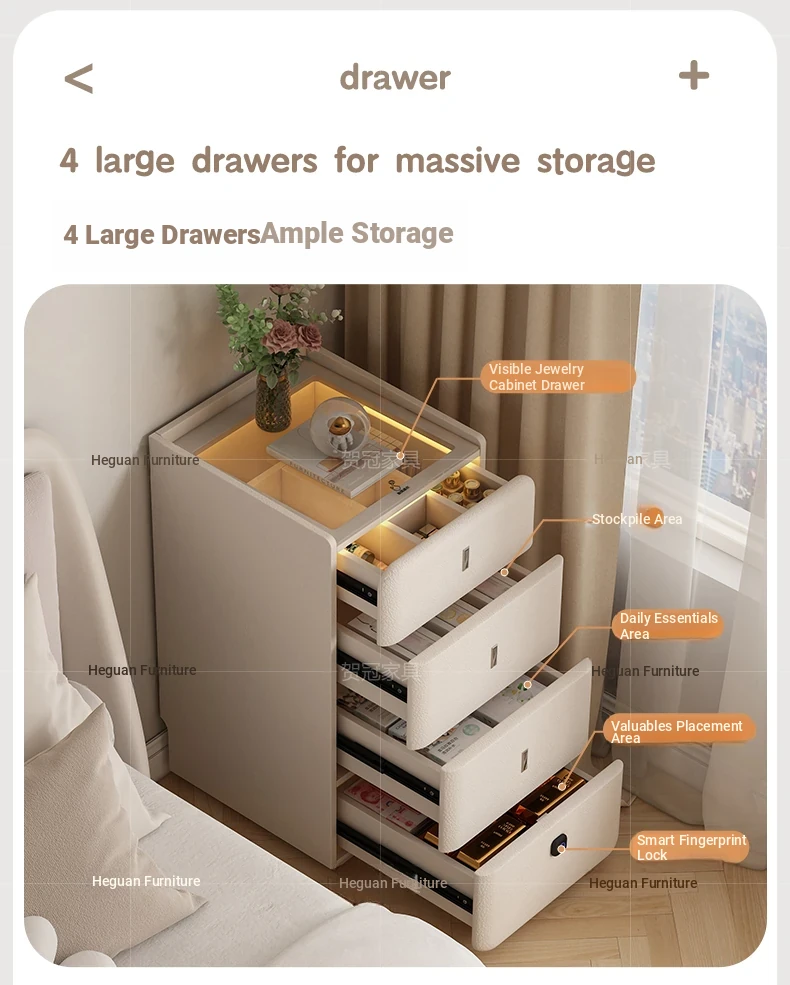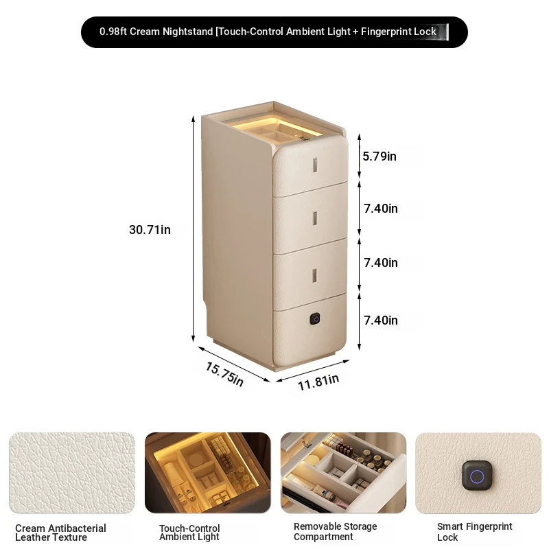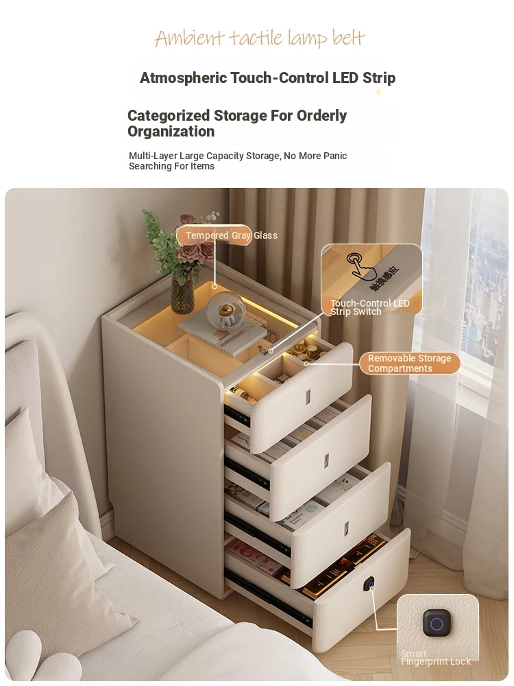 Smart Multifunctional Bedside Table – Modern Rectangular Nightstand with 80cm Height for Bedroom Storage