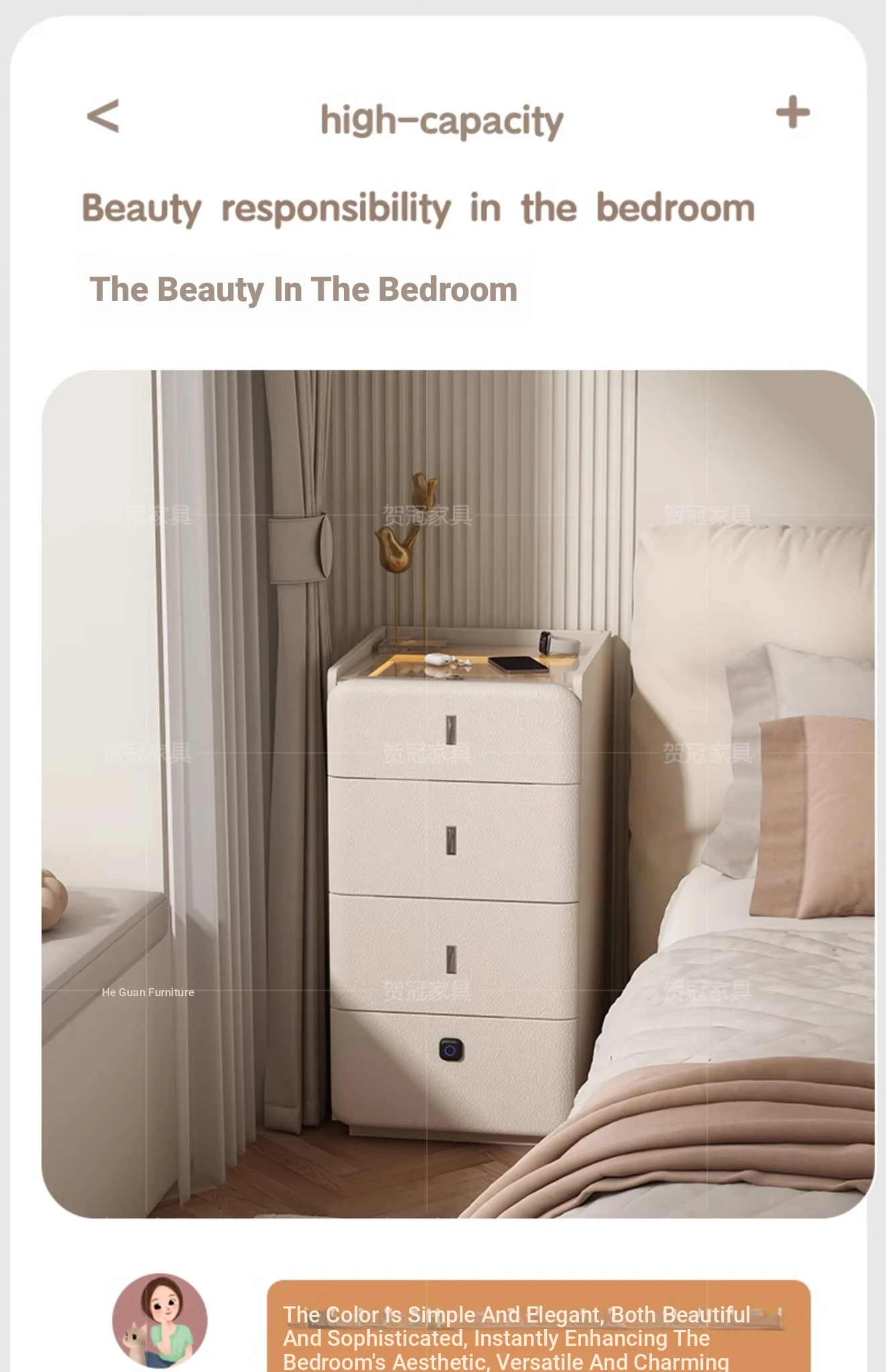 [Cream wind] 13.78 ins bucket cabinet bedside table