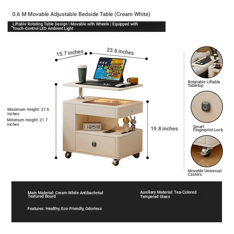 23.62 ins Movable Adjustable bedside table [three antibacterial]](Touch light with + fingerprint lock)