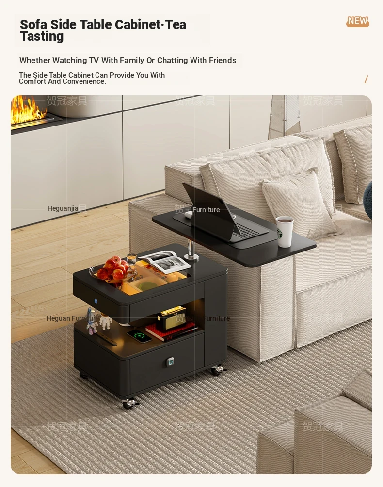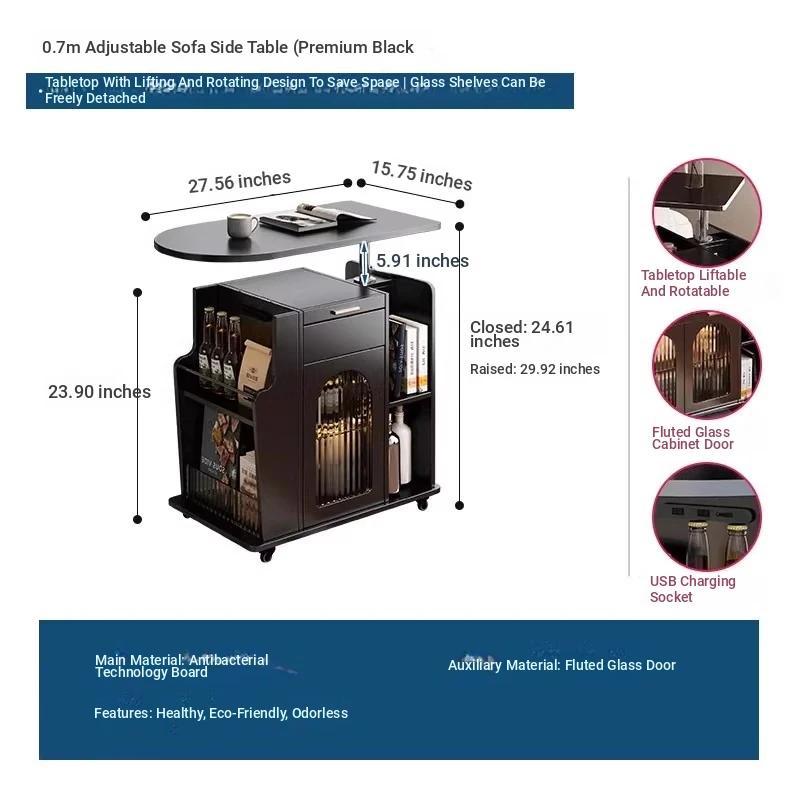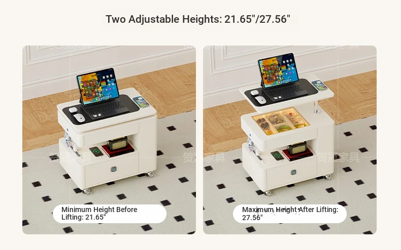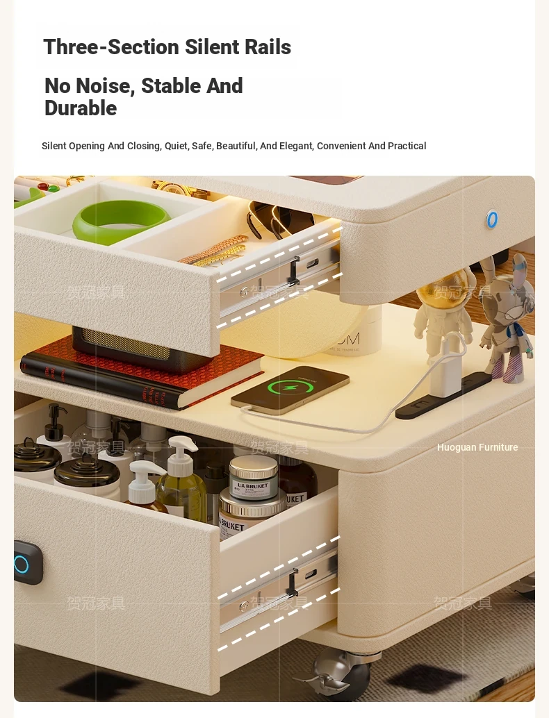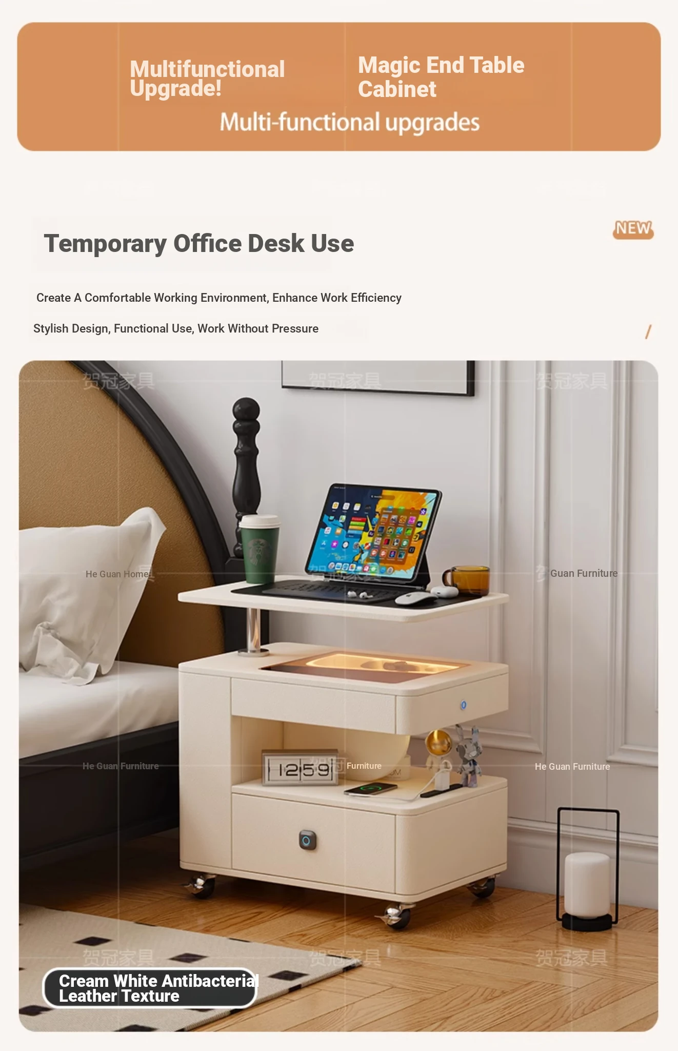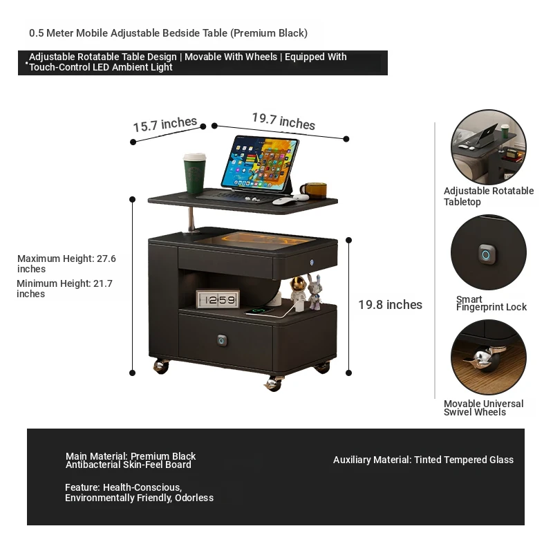 19.69 ins Movable Adjustable bedside table [three antibacterial]](Touch light with + fingerprint lock)