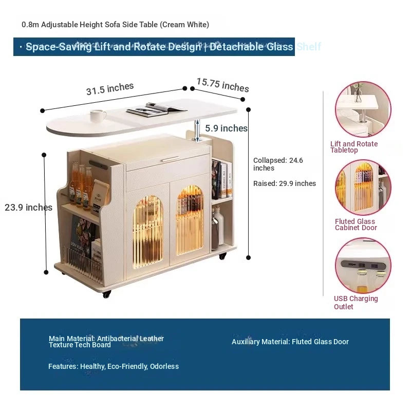31.50 in Movable Adjustable bedside table [antibacterial leather]]