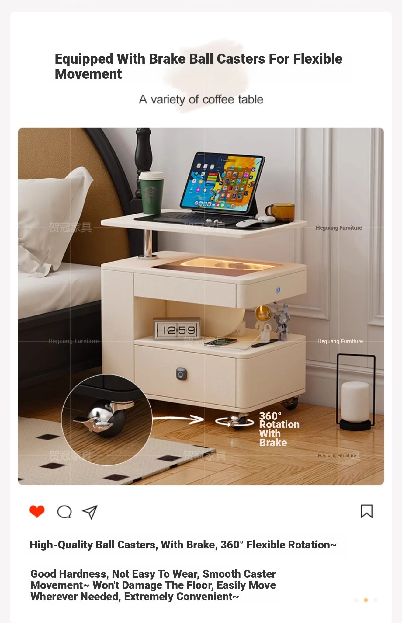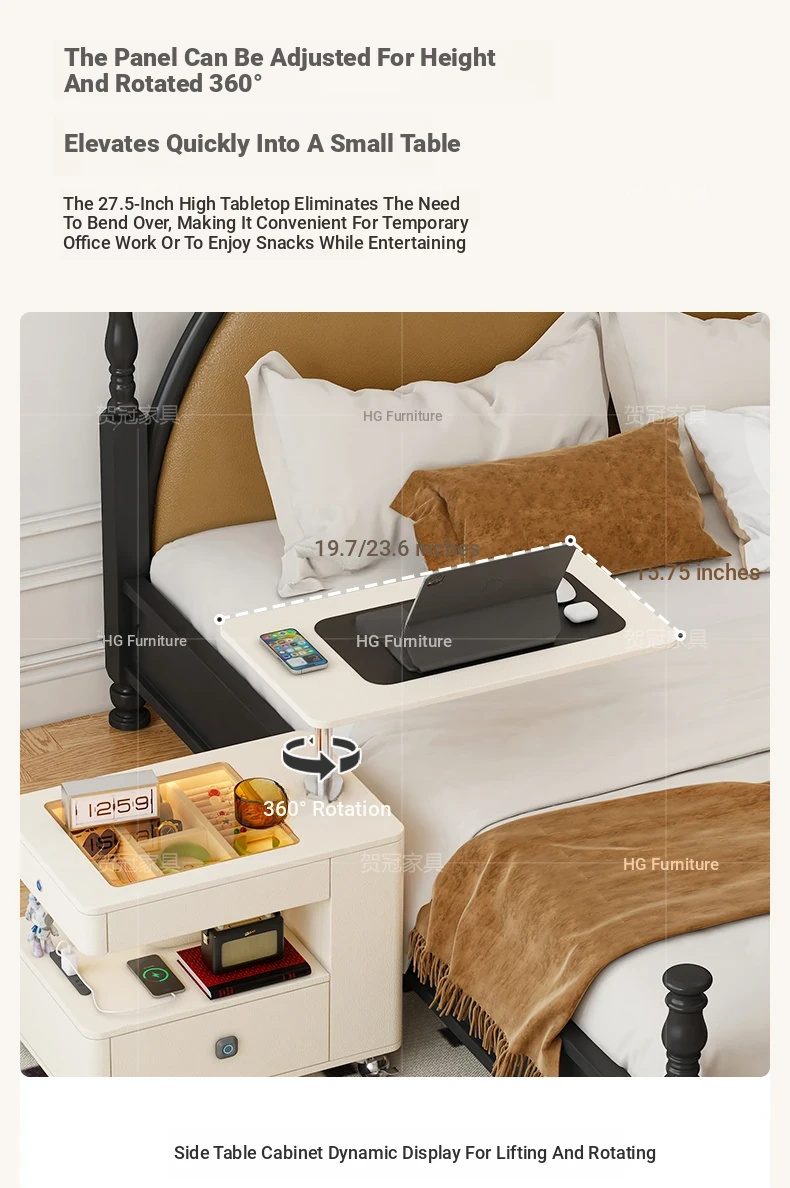 19.69 in Movable Adjustable bedside table [antibacterial leather]](Touch light with + fingerprint lock)