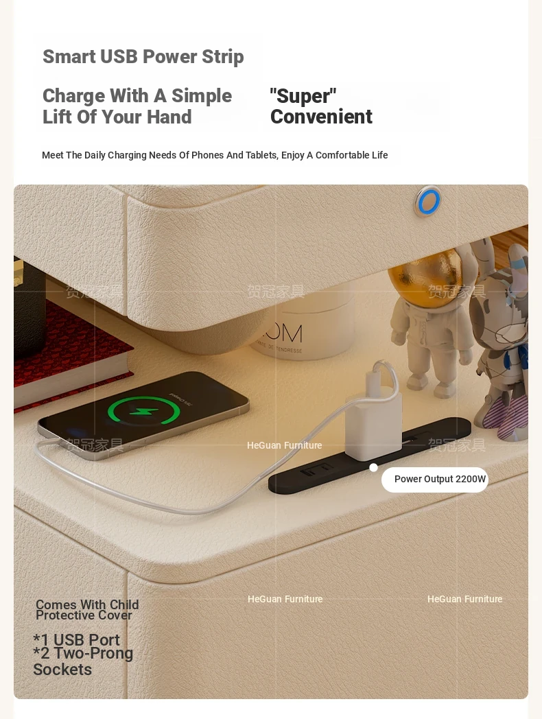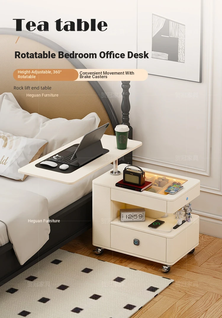 23.62 in Movable Adjustable bedside table [antibacterial leather]](Touch light with + fingerprint lock)