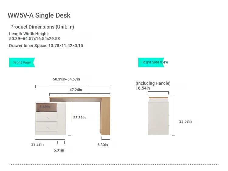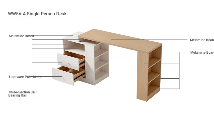 "Log color + White" WW5V-A single desk