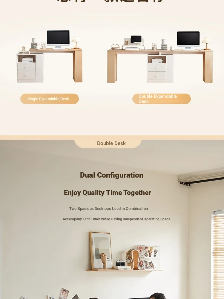 Lin's Home Scandinavian Expandable Desk - Modern Minimalist Dual Workstation Corner Computer Table by Lin's Woodworks WW5V - Perfect for Stylish Home Offices!